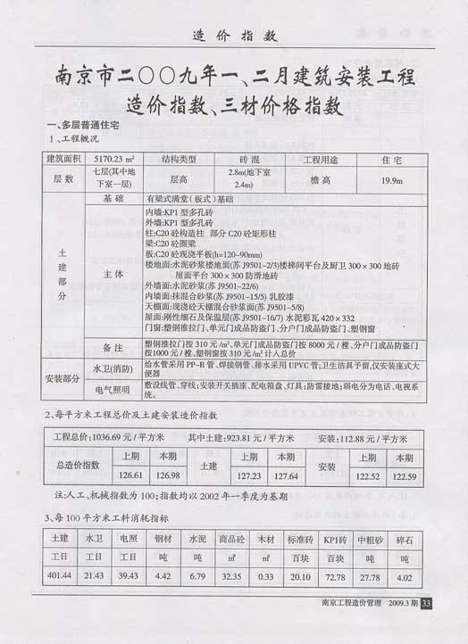 南京市2009年1、2月建筑安裝工程造價(jià)指數(shù)、三材價(jià)格指數(shù)