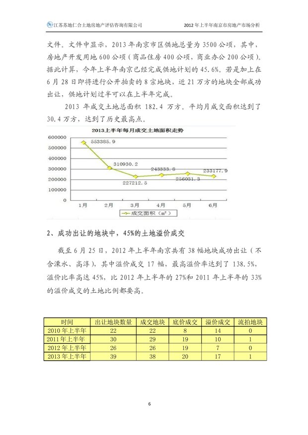 2013年上半年南京市房地產(chǎn)市場分析
