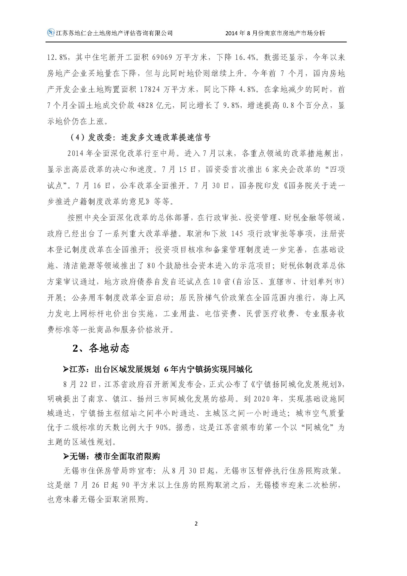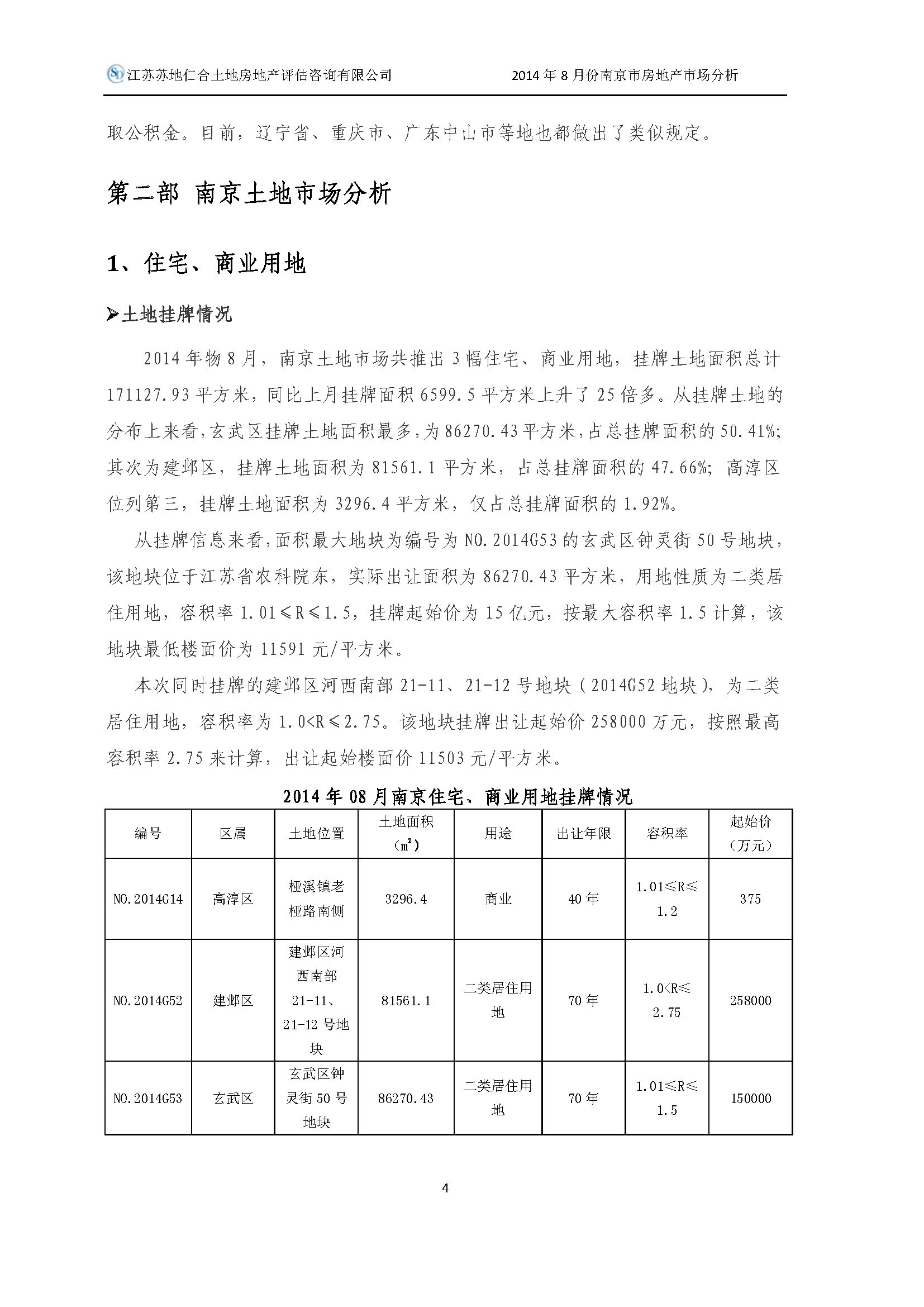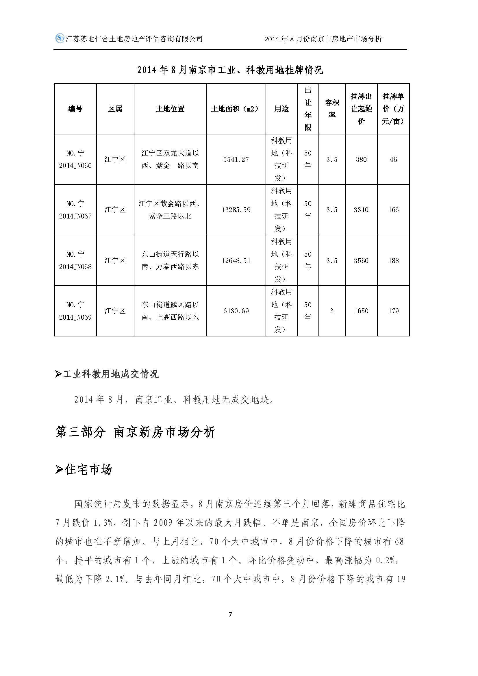2014年8月南京市房地產(chǎn)市場分析報告