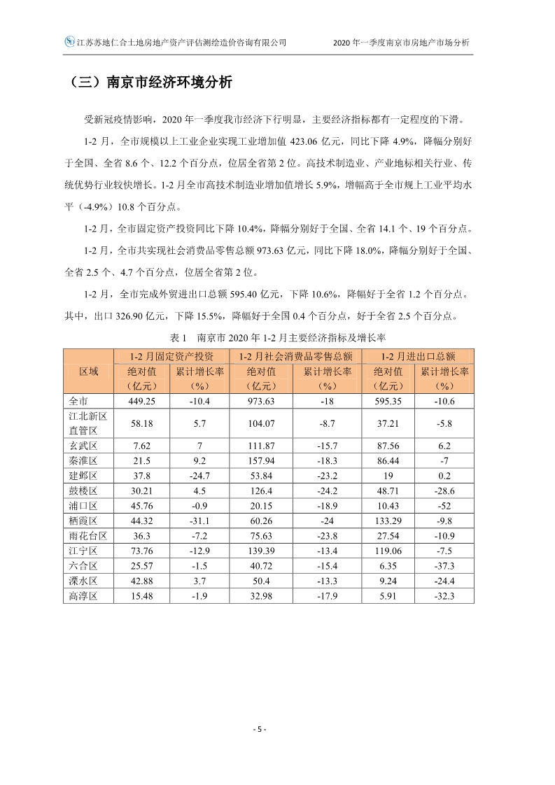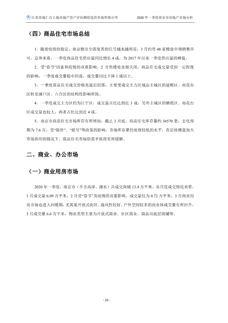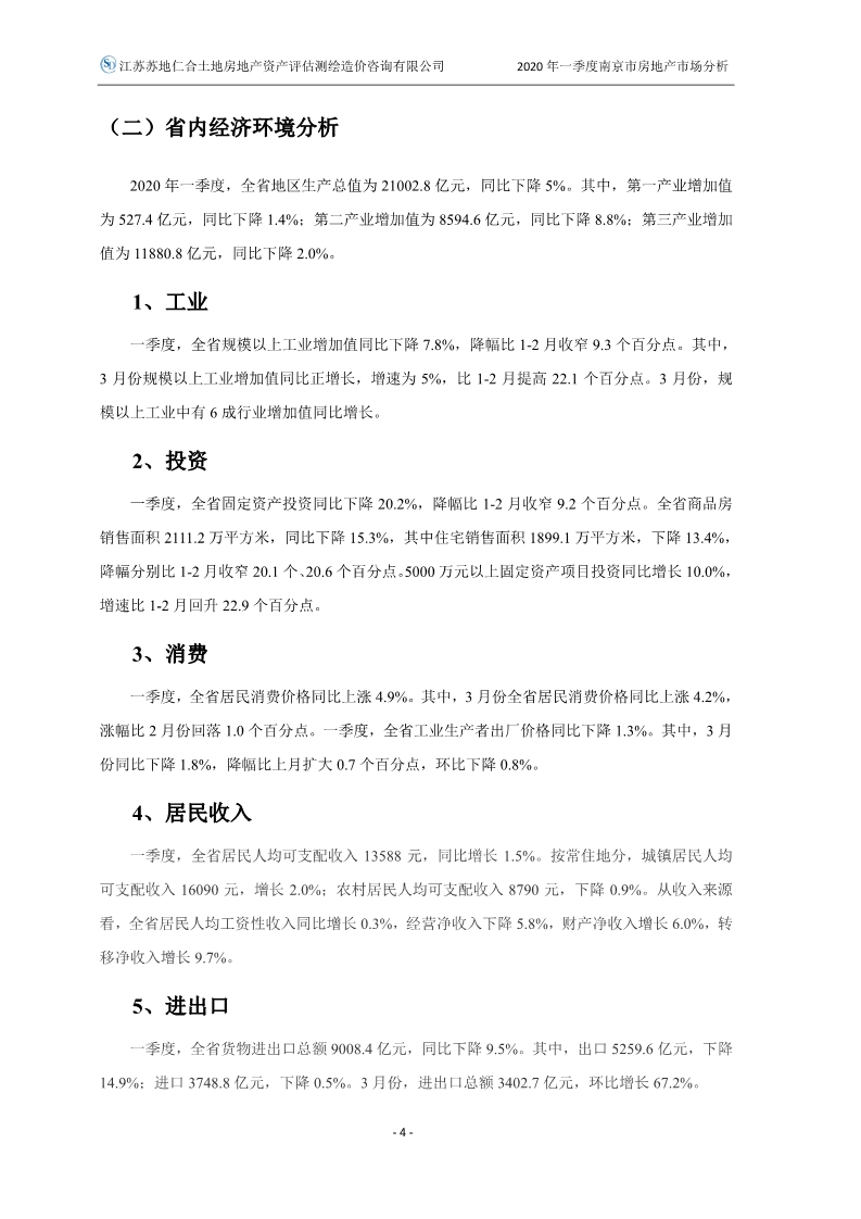2020年一季度南京市房地產(chǎn)市場分析報告